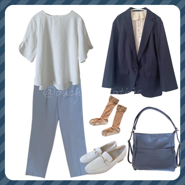 この記事では【骨格ウェーブ・ブルベ夏・ソフトエレガント】の「ホワイトブラウス」コーデを紹介します。